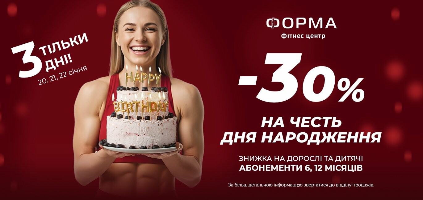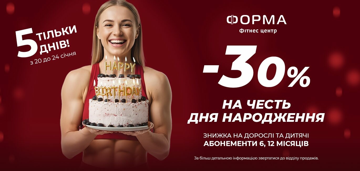 ЗНИЖКИ ДО ДНЯ НАРОДЖЕННЯ фітнес клубу «Форма»